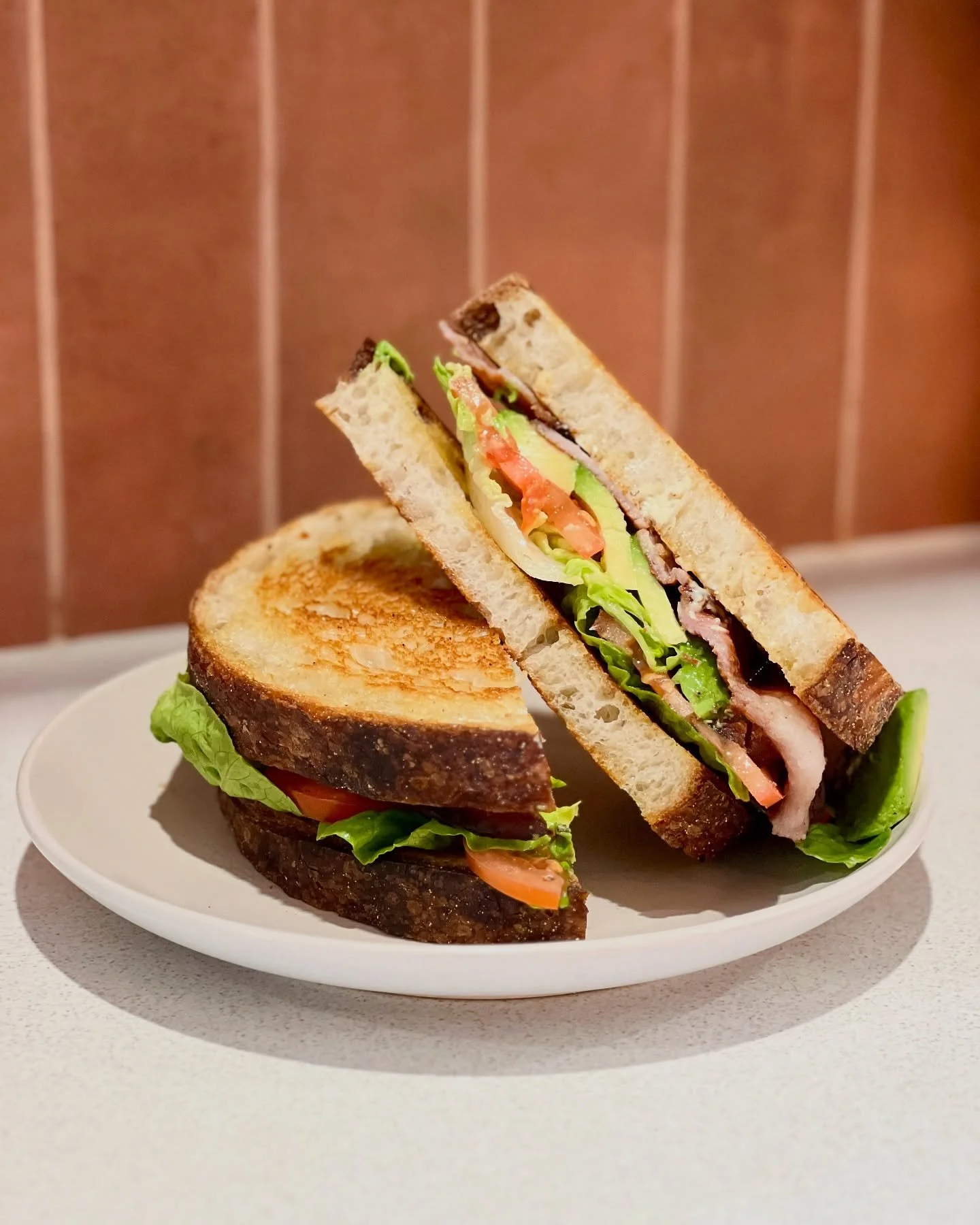 ẃ bacon, avocado, cos, tomato, & seeded mustard aioli on sourdough