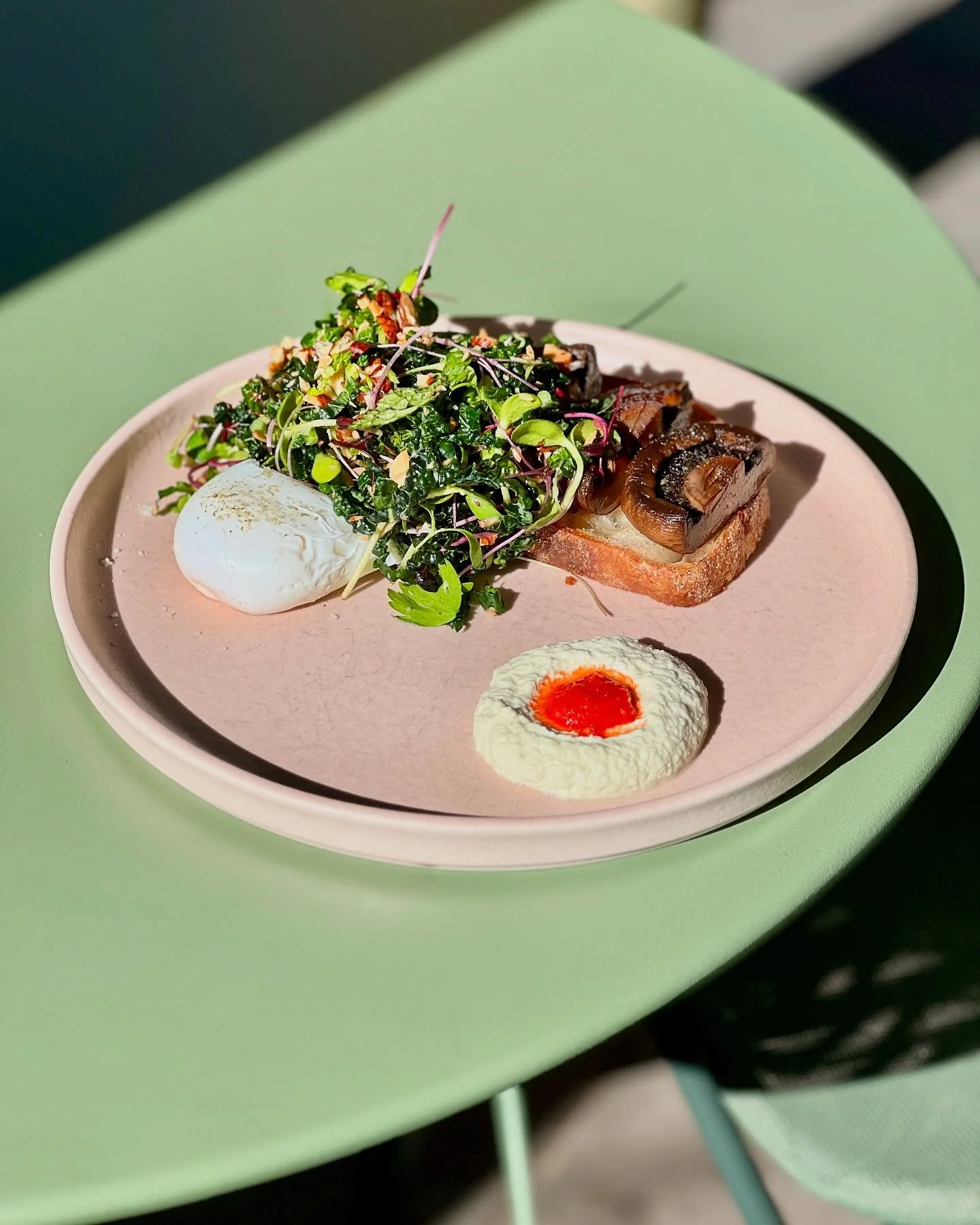 ẃ cavolo nero, almond gazpacho, fermented chilli, & a poached egg